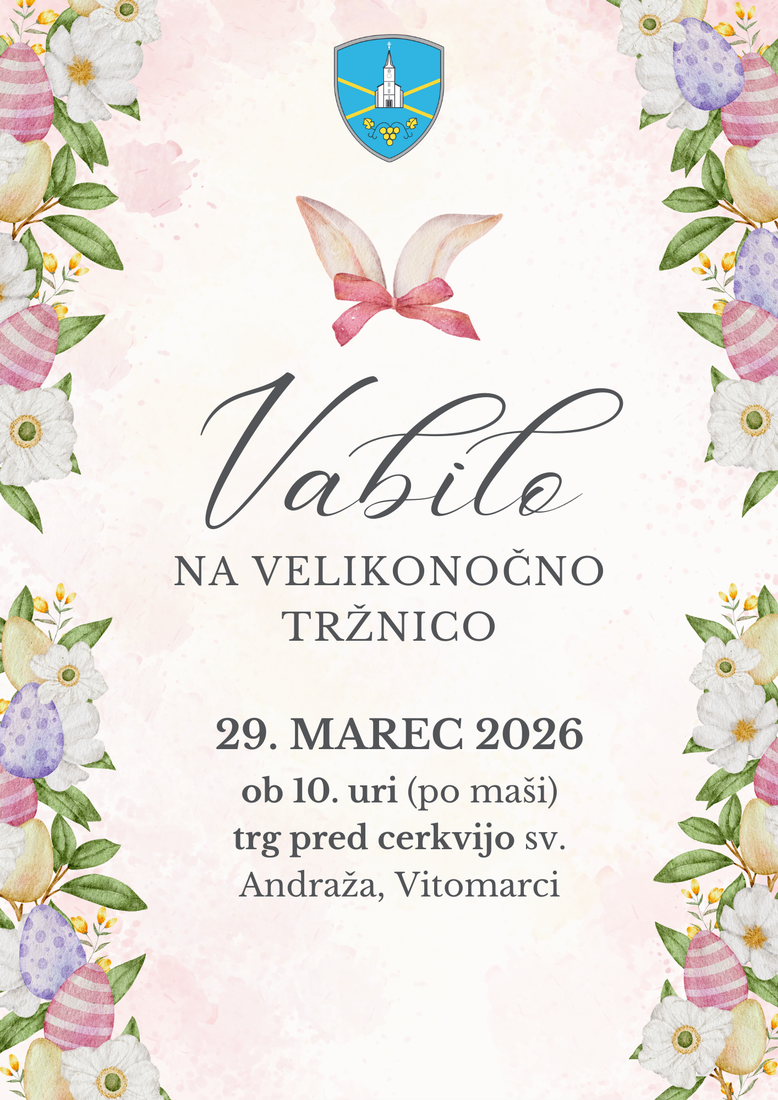 VELIKONOČNA TRŽNICA; nedelja, 29.3.2026 od 9. ure dalje, na trgu pred cerkvijo sv. Andraža
